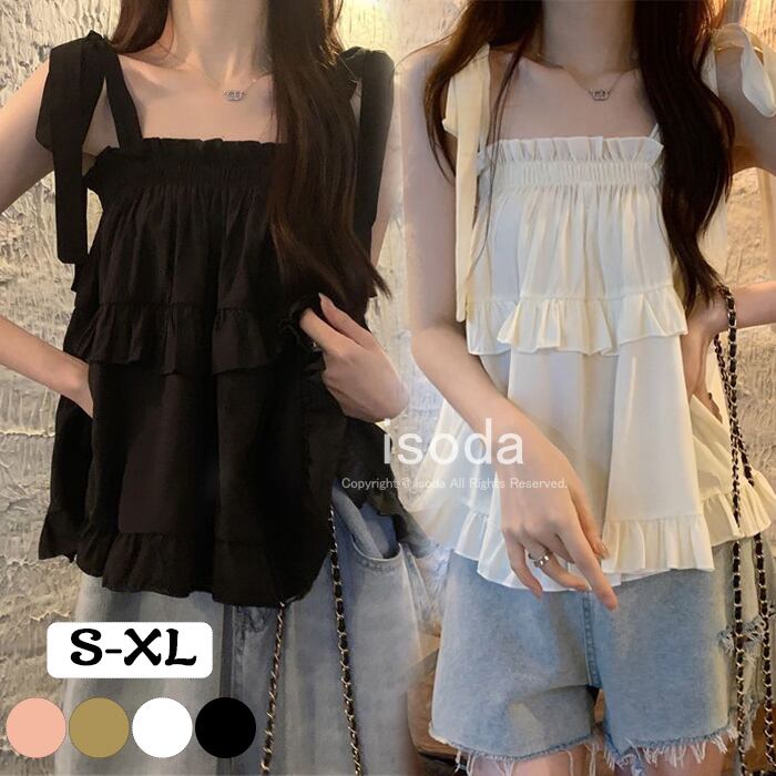 トップス レディース ノースリーブ フリル タンクトップ キャミソール ベスト レイヤード カジュアル | isoda