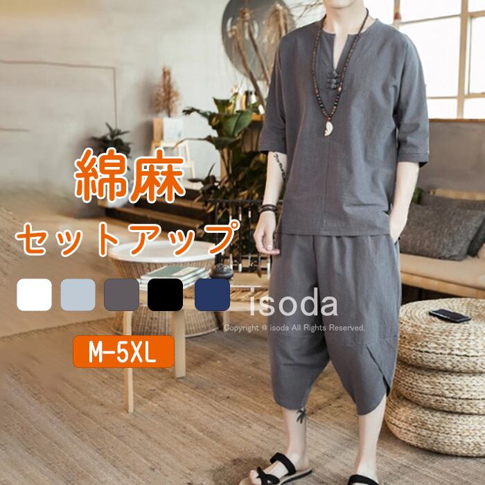 セットアップ メンズ 綿麻 上下セット リネン 夏 半袖 Tシャツ 半袖シャツ ショートパンツ カジュアル | isoda