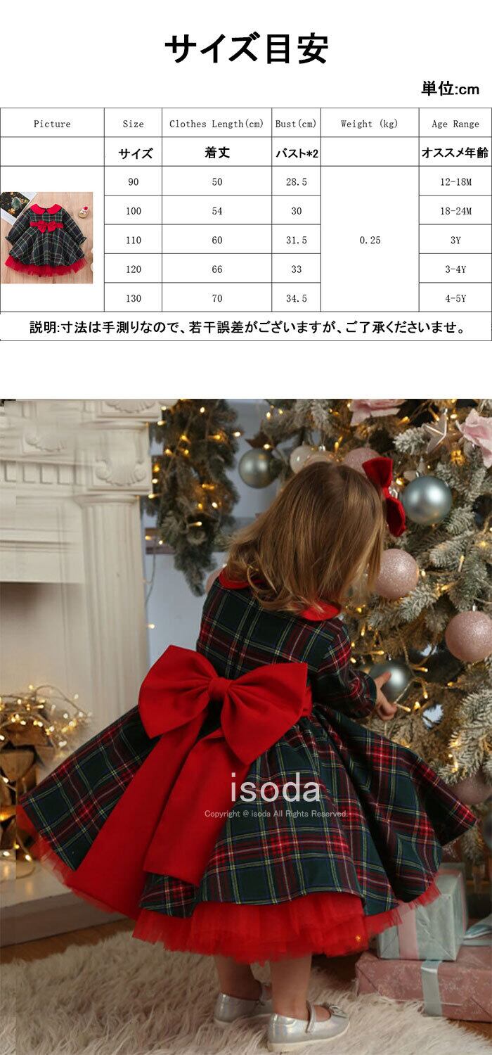 クリスマス ワンピース 子ども 女の子 ワンピース 子供 ベビー 長袖 チェック柄 リボン yss-jrf73