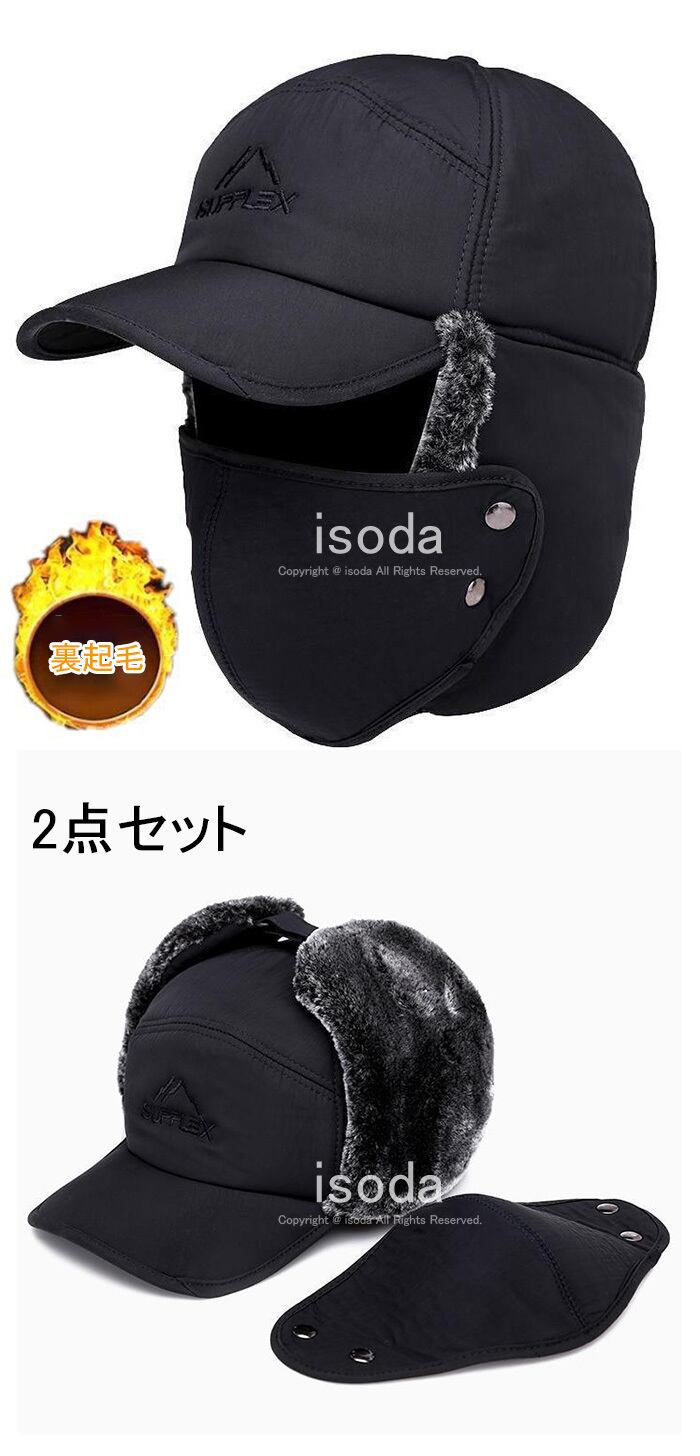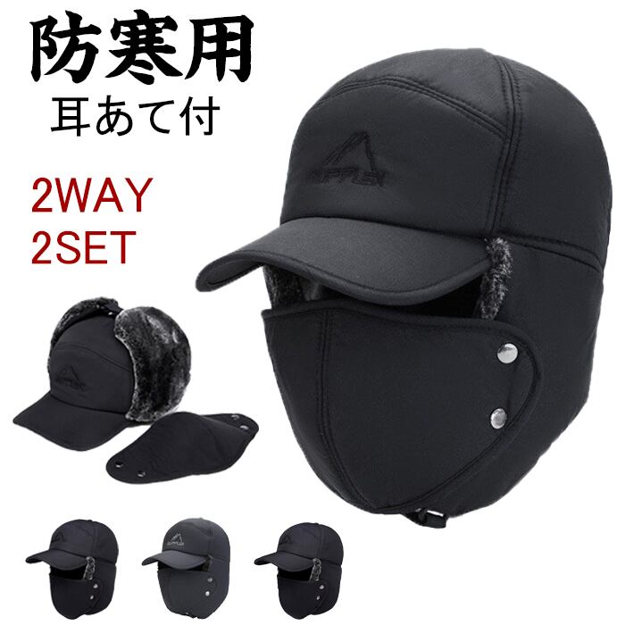 帽子 メンズ キャップ 耳当て付 冬 秋冬 防寒 防寒帽子 イヤーマフ パイロットキャップ マスク付きyss-hat14