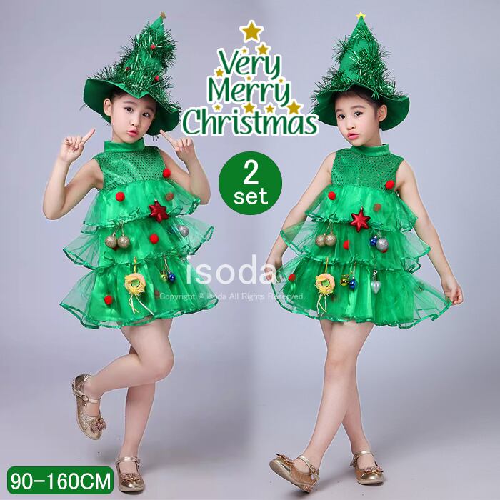 サンタ クリスマスツリー コスプレ クリスマス衣装 キッズ 女の子 ワンピース サンタコスチュームyss-jrf209