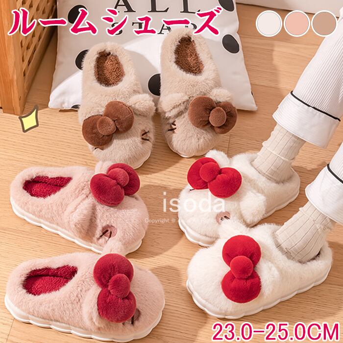 ルームシューズ レディース スリッパ 暖かい 室内用 リボン付き ふわふわ もこもこ 裏起毛 ルームシューズ yss-shoes156