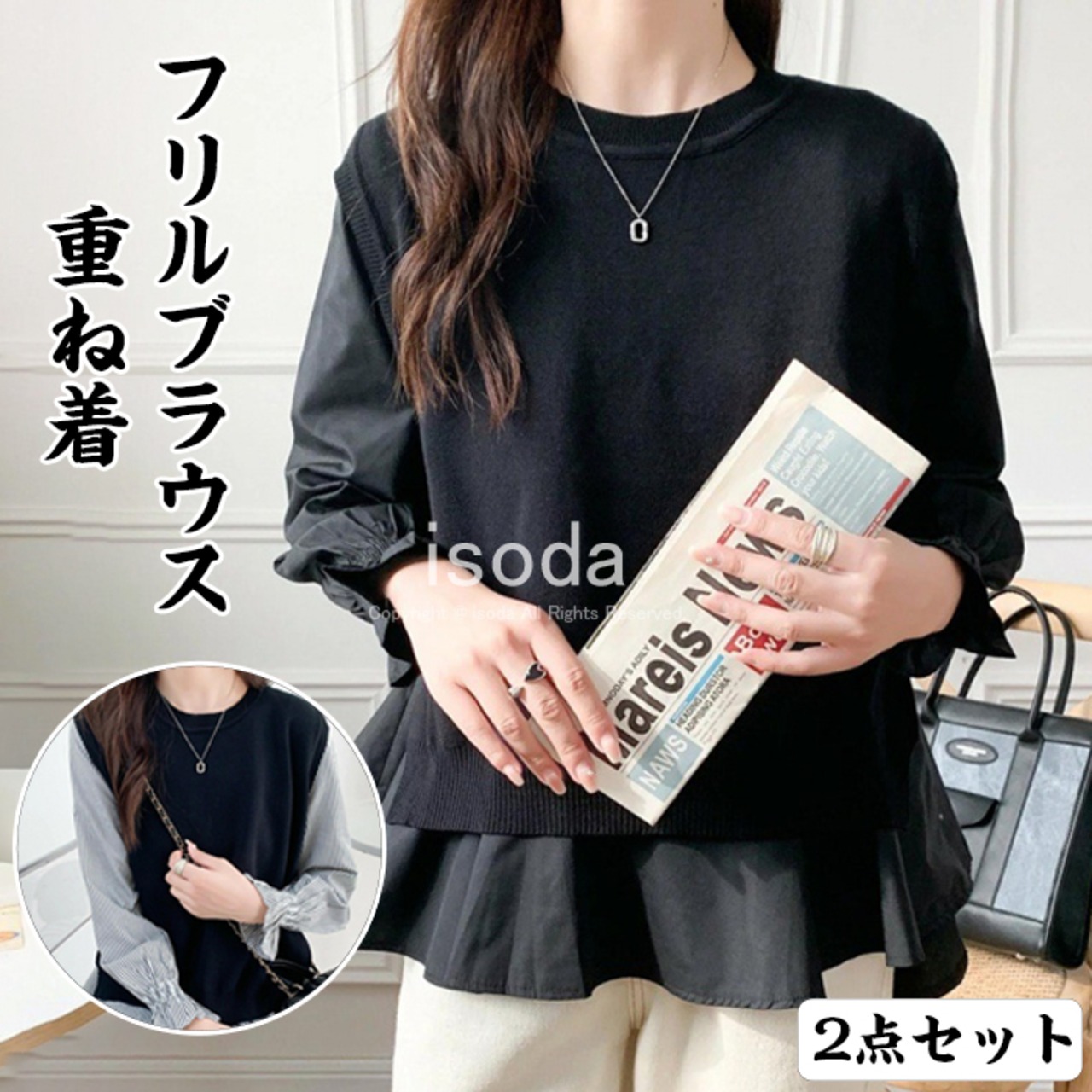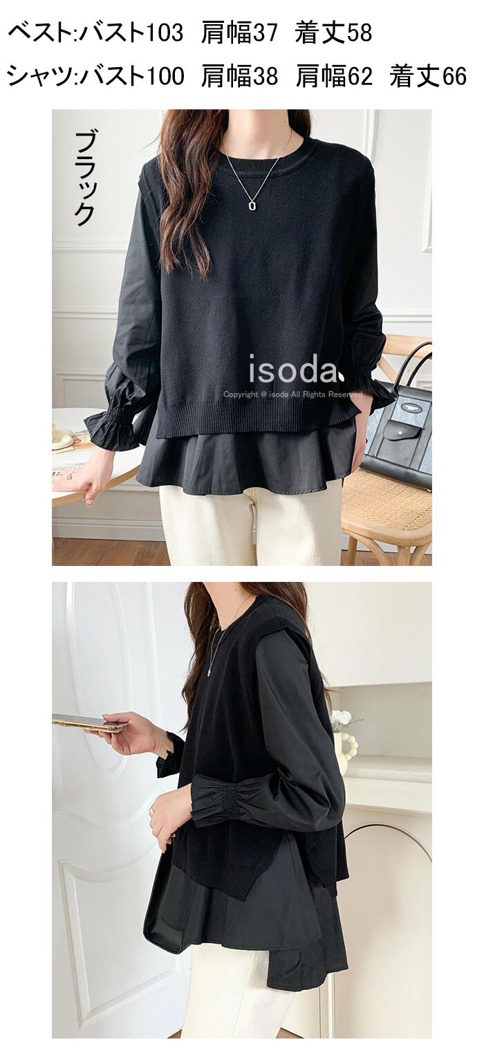 ブラウス トップス レディース 春秋 ブラウス 重ね着 セットアップ 2点セット ニットベスト セーター トップス yss-ladyshirt99
