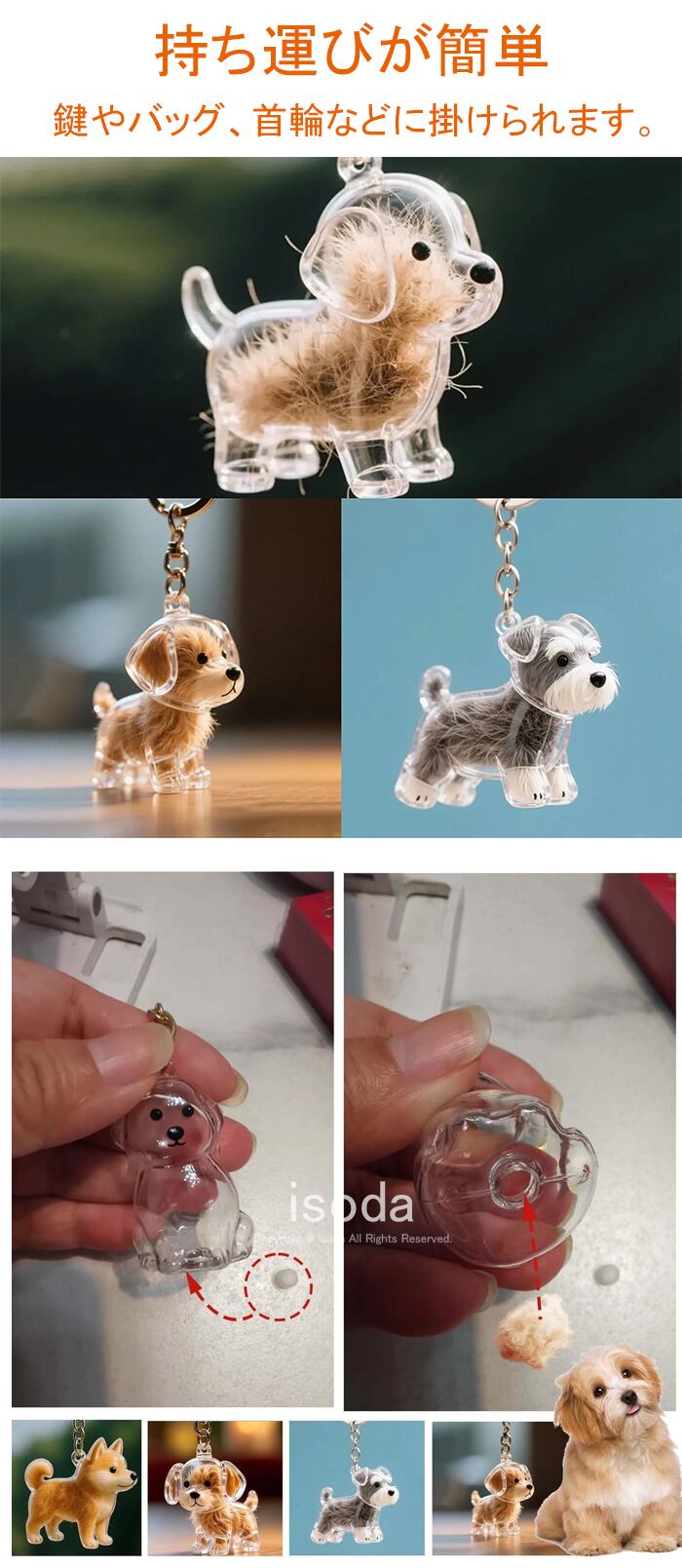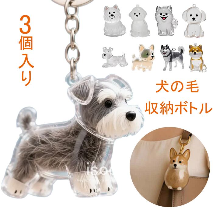 ペット 遺毛 ケース 透明 3個セット ペット 遺毛入れ キーホルダー 犬の毛収納ボトル 10タイプ 犬型yss-things168
