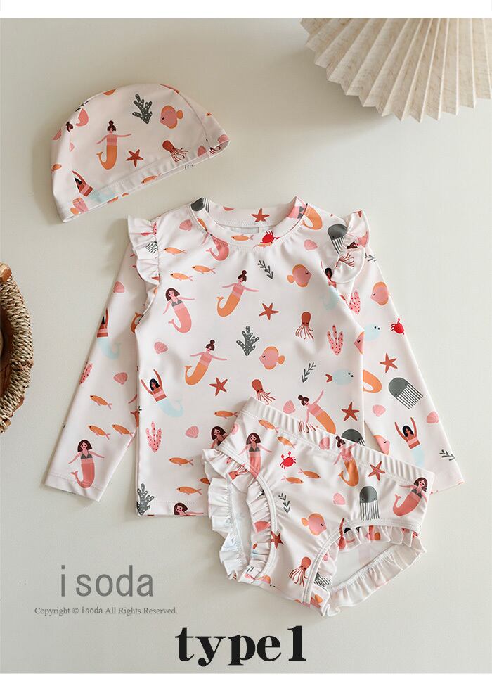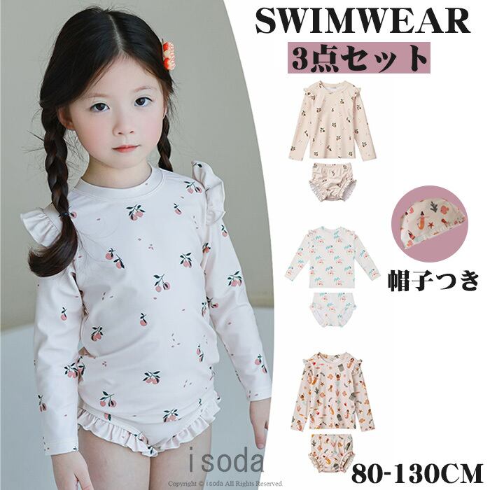 キッズ 水着 女の子 セパレート ラッシュガード 長袖 トップス パンツ 子供 ベビー みずぎ 3点セット かわいい 小花柄 キッズ水着 水泳 スイムウェア おしゃれ 小学生 lal-swimwear07 | isoda