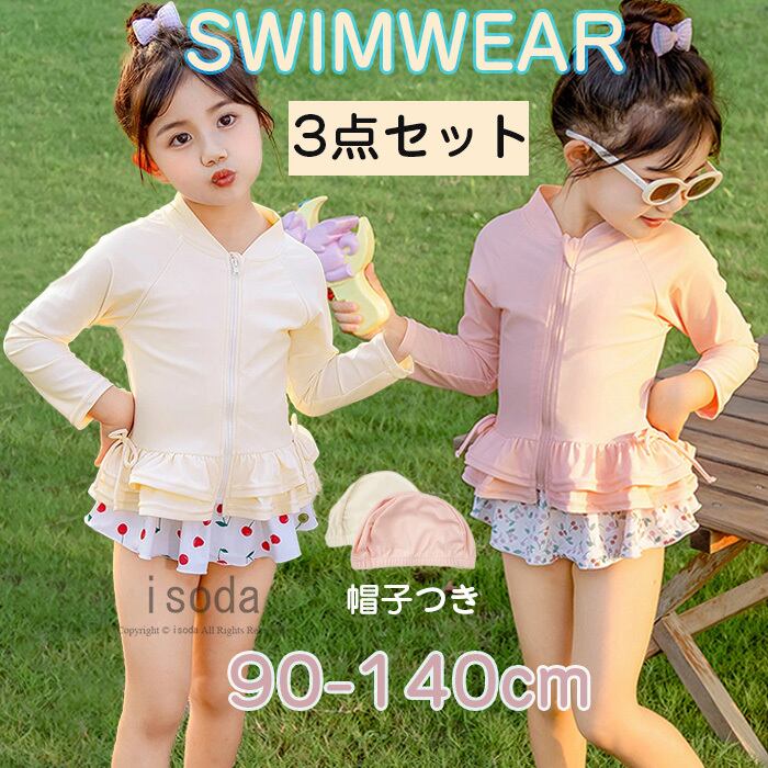 子供 水着 キッズ 女の子 セパレート ラッシュガード 長袖 オールインワン みずぎ 子供水着 子ども ベビー水着 フリル かわいい UVカット lal-swimwear14