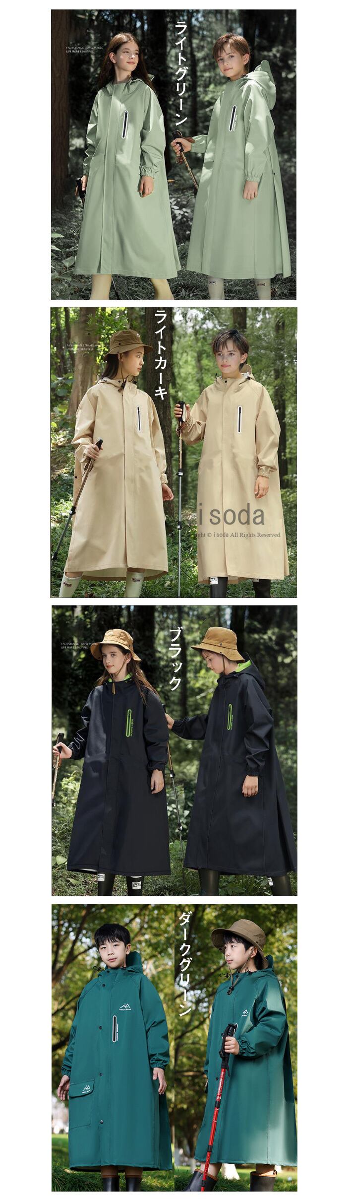 レインコート キッズ ランドセル対応 子供用 女の子 子供 男の子 撥水 防水 反射テープ ロング丈 レインポンチョ レディース リュック対応 収納バッグ付 lal-raincoat10 | isoda