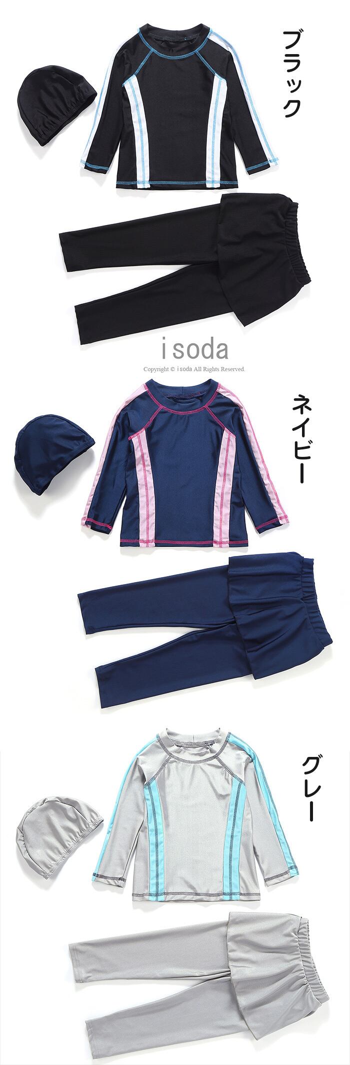 女の子 水着 セパレート キッズ 長袖 ラッシュガード 長パンツ スイムウェア 練習 3点セット 子ども みずぎ スクール水着 ジュニア 体型カバー レギンス lal-swimwear22 | isoda