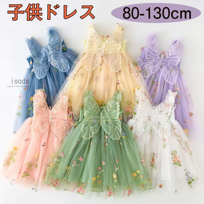子供 ドレス ワンピース プリンセス キッズ 女の子 羽根つき 刺繍入り チュールドレス かわいい ブルー 子どもドレス ベビー服 夏 lal-girldress13