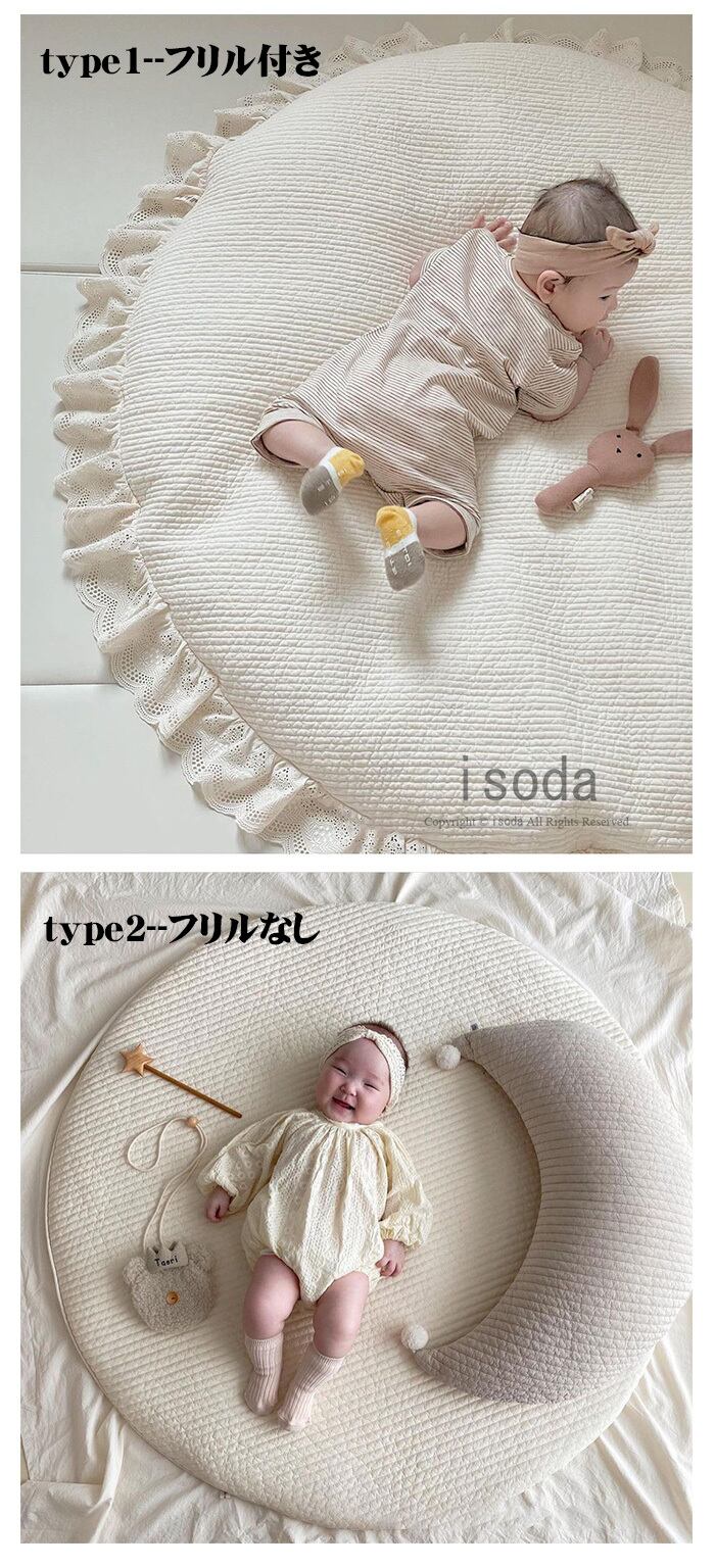 ベビーマット ラテックスマット ベビー サニーマット フリル 洗える 赤ちゃん 厚手 お昼寝マット プレイマット 月齢フォト マット ごろ寝 ベビー マット 寝相アート lal-things33 | isoda