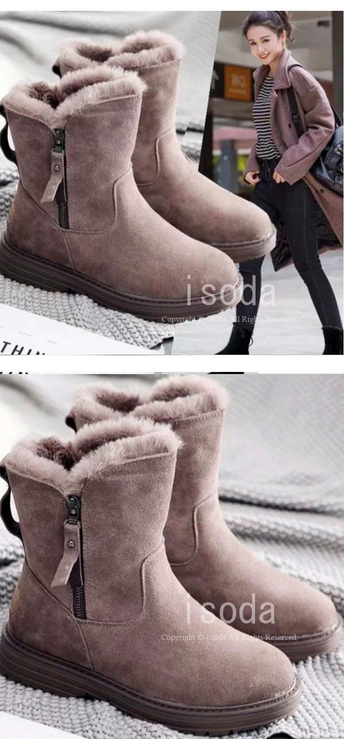 ムートンブーツ レディース スノーブーツ ブーツ レディース ミドルブーツ レディース フアー ファー付き 走れる 痛くない もこもこシューズ ブーツ あったか カジュアル 遊び デート 裏起毛 防寒 婦人靴 | isoda