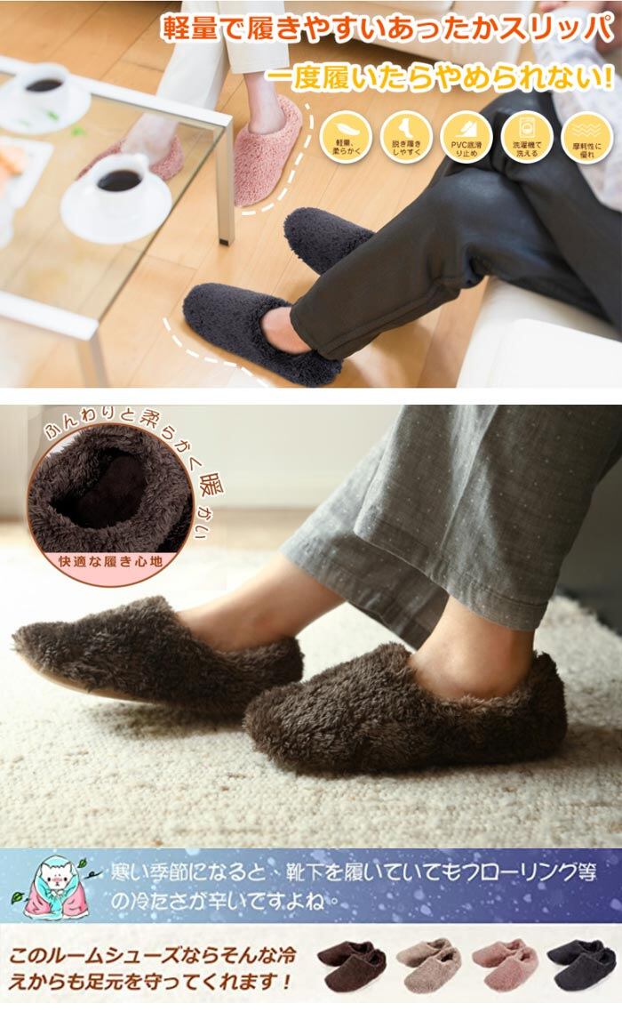 あったかスリッパ足首から足元全体を覆うので、寒さをシャットアウトしてくれます.極細繊維の中にたくさんの空気を逃さず含まれるので、保温力が高くなっています。