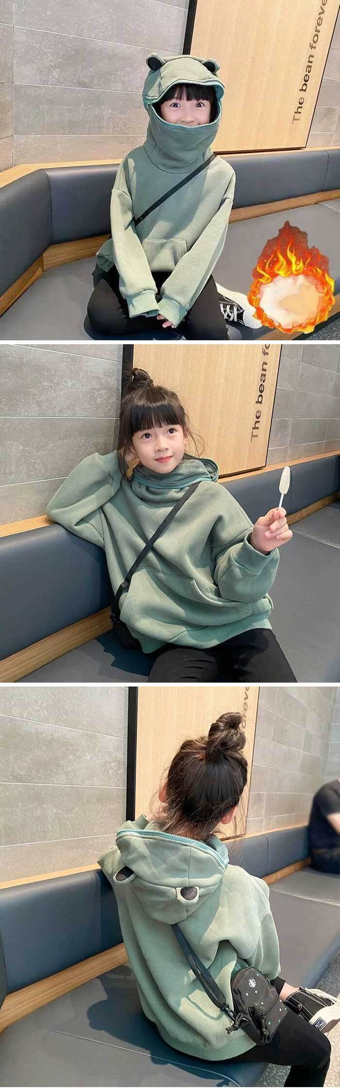 パーカーはカエルの姿をしていて、とても面白くてかわいいです。帽子はファスナーで閉じて、かわいい「カエルちゃん」になります。