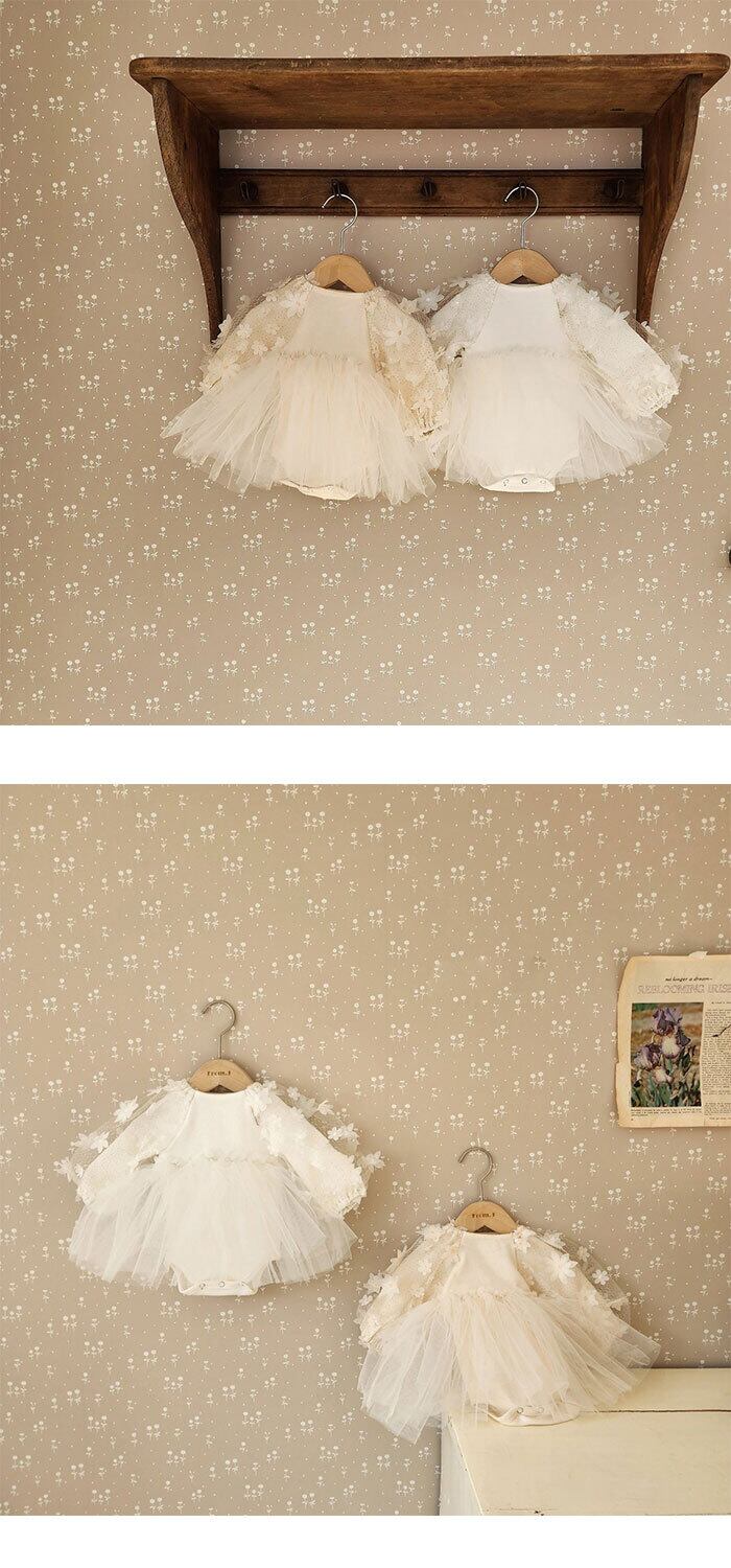 長袖 セレモニードレス ベビードレス 結婚式 ロンパース 女の子 ドレス 子供 ベビー服 誕生日 フラワーメッシュ チュールドレス チュール 1歳 ベビー 赤ちゃん ワンピース レース 新生児 かわいい ハーフバースデー お宮参り 100日祝い 60 70 80 90 100 | isoda