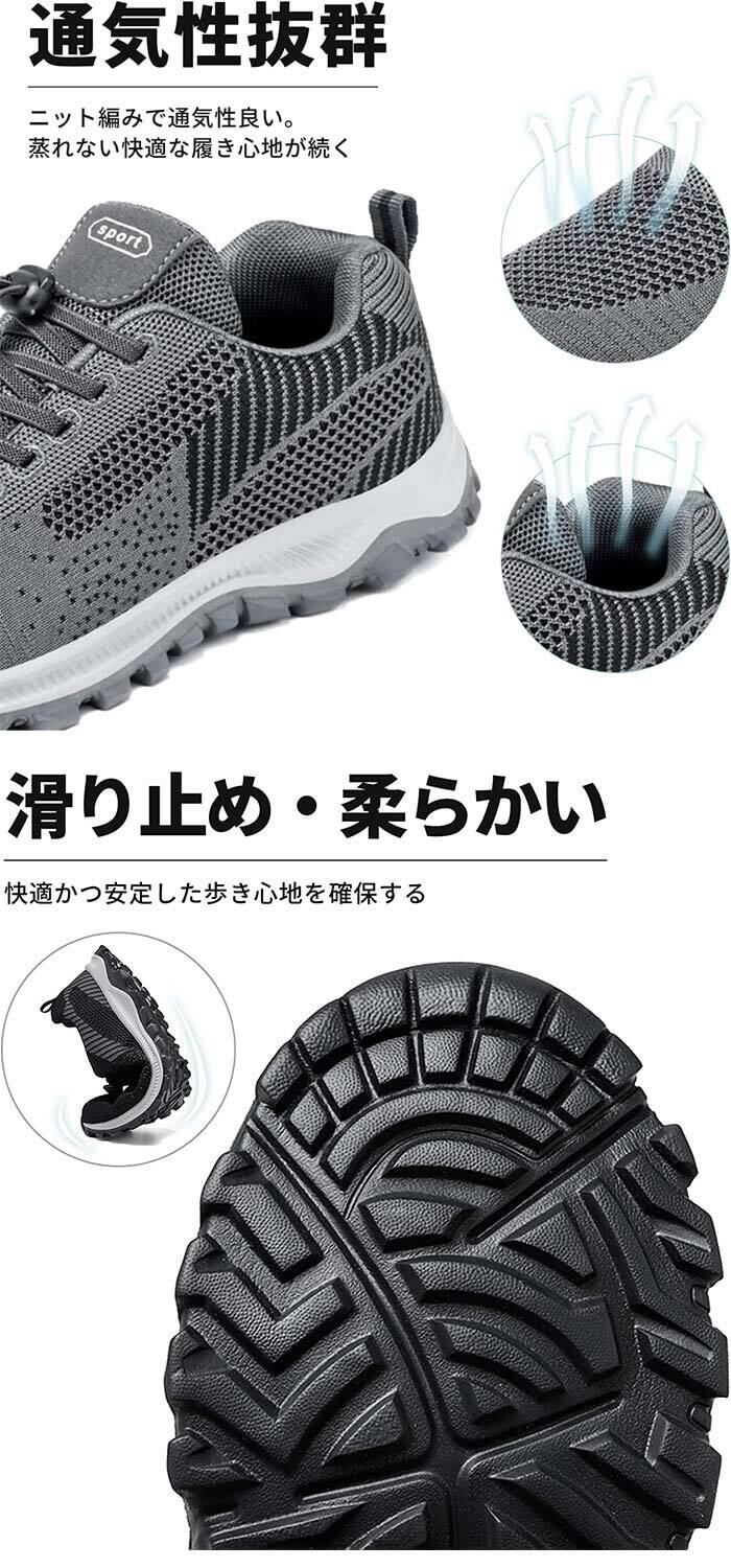【通気性抜群】アッパーは通気性に拘るニット編み素材を採用するので、足蒸れの悩みから解放され、涼しく快適な履き心地が持続します。