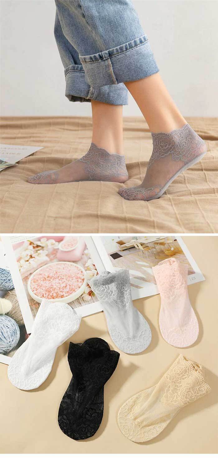 この丈がまだなら是非試して欲しい!かわいい!足首細く見える!レースの美しいくるぶし丈デザインです。女性用M22.0cm-24.0cmぐらいのサイズ感です。モデル足は23.5cmです。