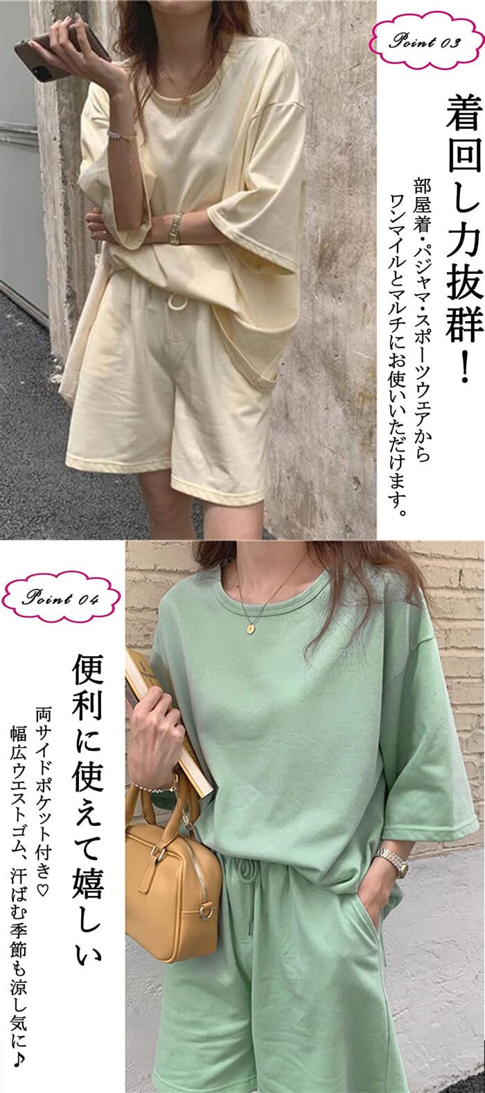 セットアップ Tシャツ パンツ レディース カジュアル 半袖 短パン ルームウェア 楽ちんコーデセットアップ 可愛い ゆったり 無地 着痩せや効果 レディースファッションスーツ パンツスーツ シンプル | isoda