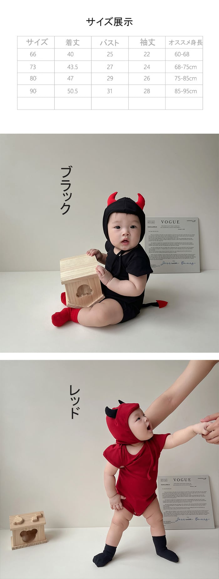 ハロウィン 衣装 ベビー ロンパース コスプレ 小悪魔 着ぐるみ 赤ちゃん 仮装 デビル 子供 女の子 男の子 帽子付き