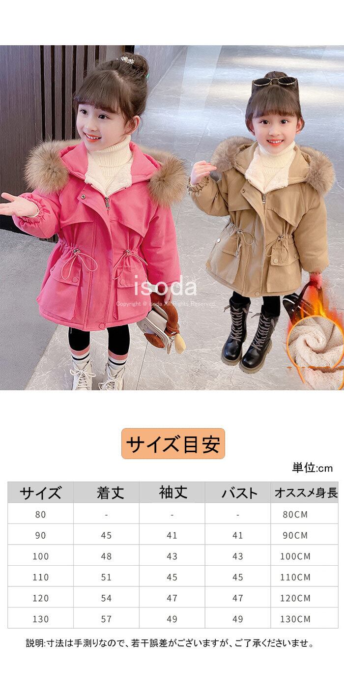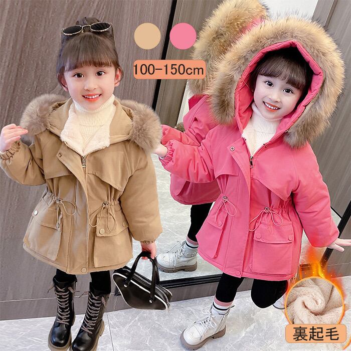 キッズ アウター 女の子 裏ボア 子供中綿コート 厚手 フード付き 子供服 子供コート 裏起毛 無地 | isoda