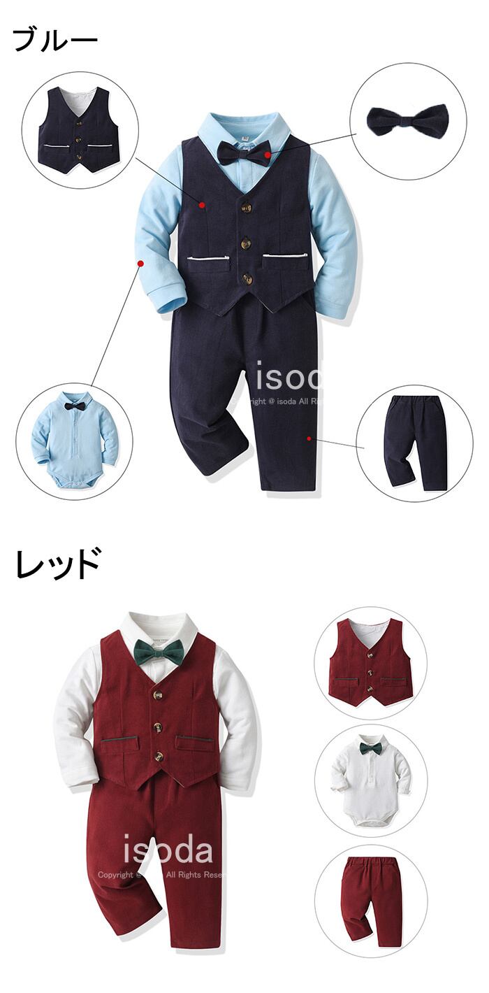 キッズ ベビー スーツ フォーマル 4点セット 男の子 ロンパース セットアップ フォーマルスーツ | isoda