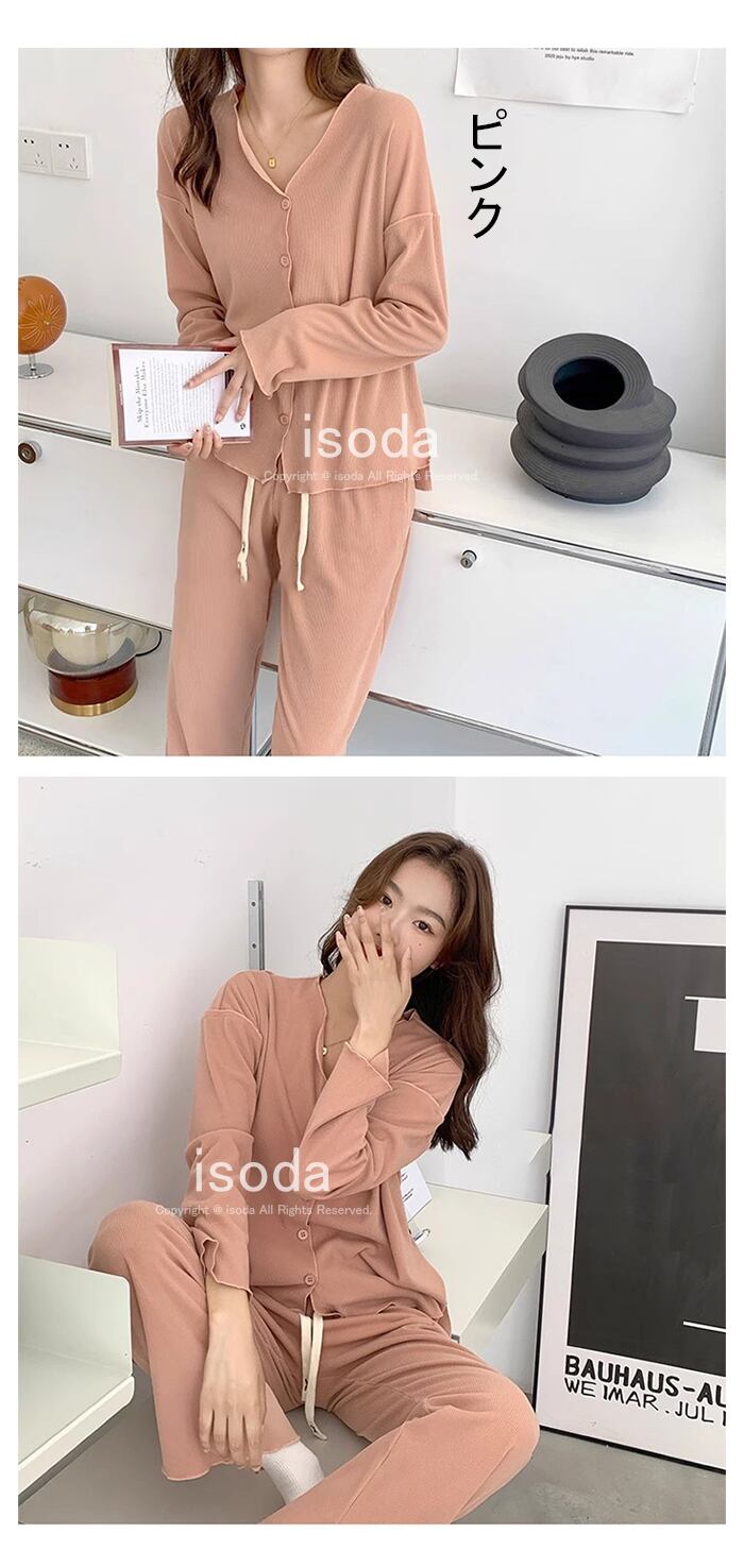 パジャマ レディース 長袖 前開き ルームウェア 上下セット 部屋着 大きいサイズ セットアップ おしゃれ | isoda
