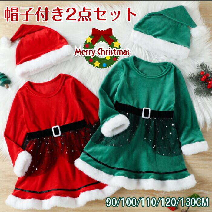 クリスマス 衣装 子供 ワンピース 赤 グリーン 帽子 女の子 プリンセス 子供用 仮装 パーティー
