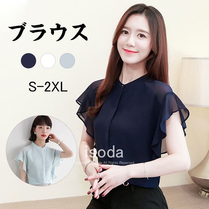 ブラウス レディース シャツ tシャツ 半袖 フレア袖 ボリュームスリーブ カジュアル レディース シフォン | isoda