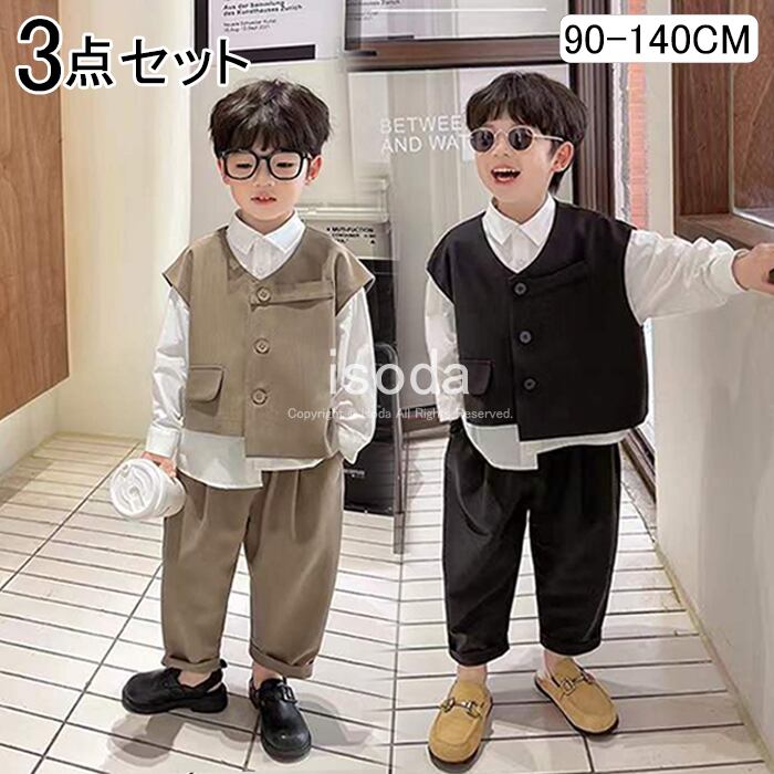 フォーマルスーツ 男の子 キッズ スーツ フォーマル 3点セット キッズスーツ 男の子 ベビー セットアップ | isoda